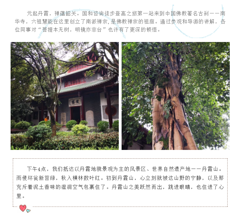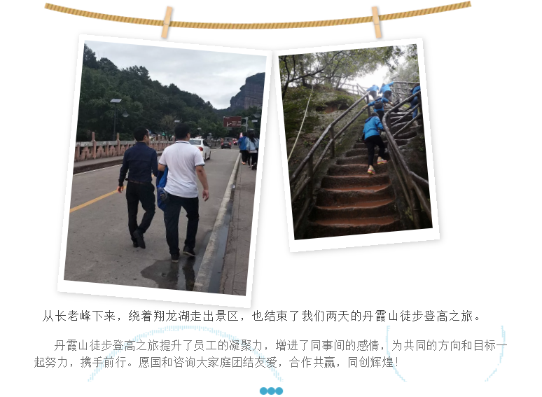企業(yè)文化為了豐富員工的業(yè)余生活,緩解工作壓力,促進(jìn)員工之間的溝通與交流,提高團(tuán)隊(duì)協(xié)作和凝聚力,國(guó)和咨詢于11月17至18日組織開(kāi)展了2018秋季丹霞山徒步登高旅游活動(dòng)。