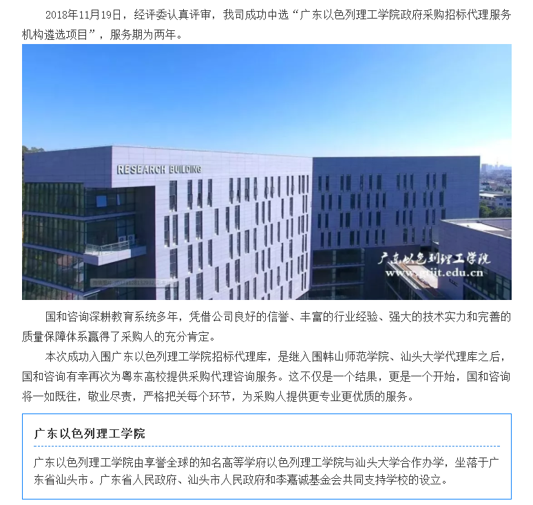 我司成功中選“廣東以色列理工學(xué)院政府采購招標(biāo)代理服務(wù)機(jī)構(gòu)遴選項(xiàng)目”