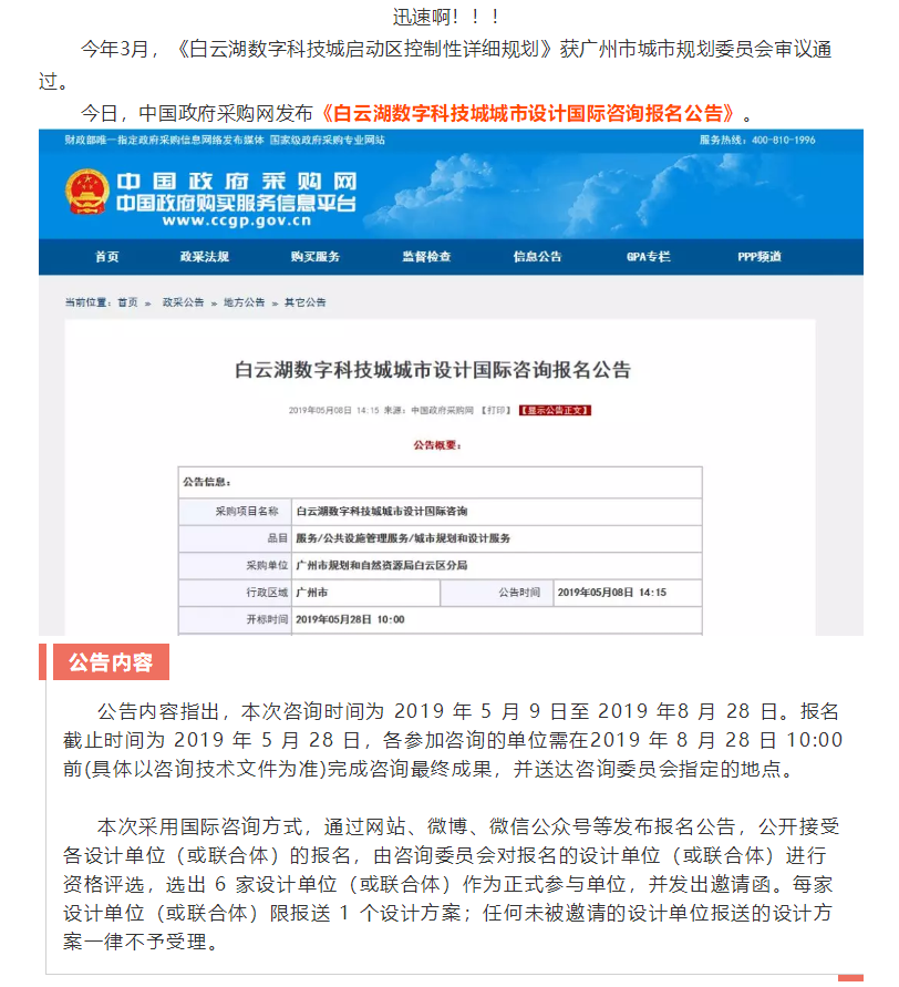 重磅!白云湖數(shù)字科技城城市設(shè)計啟動在即!面向全球招募設(shè)計單位