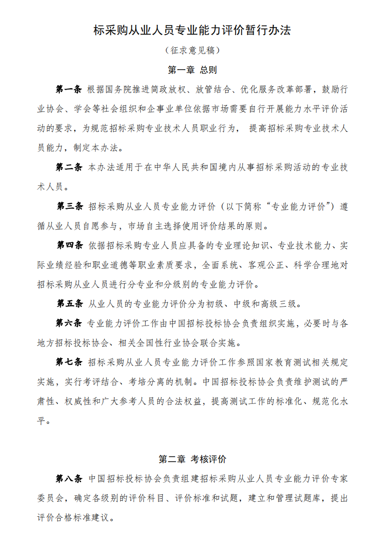 附:《招標(biāo)采購(gòu)從業(yè)人員專業(yè)能力評(píng)價(jià)暫行辦法》(征求意見(jiàn)稿)