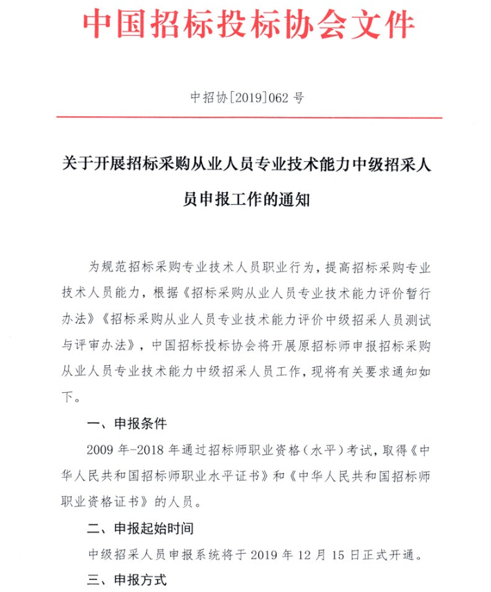 關(guān)于開展招標采購從業(yè)人員專業(yè)技術(shù)能力中級招采人員申報工作的通知