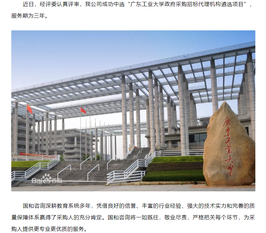 我公司成功中選“廣東工業(yè)大學(xué)政府采購(gòu)招標(biāo)代理機(jī)構(gòu)遴選項(xiàng)目”