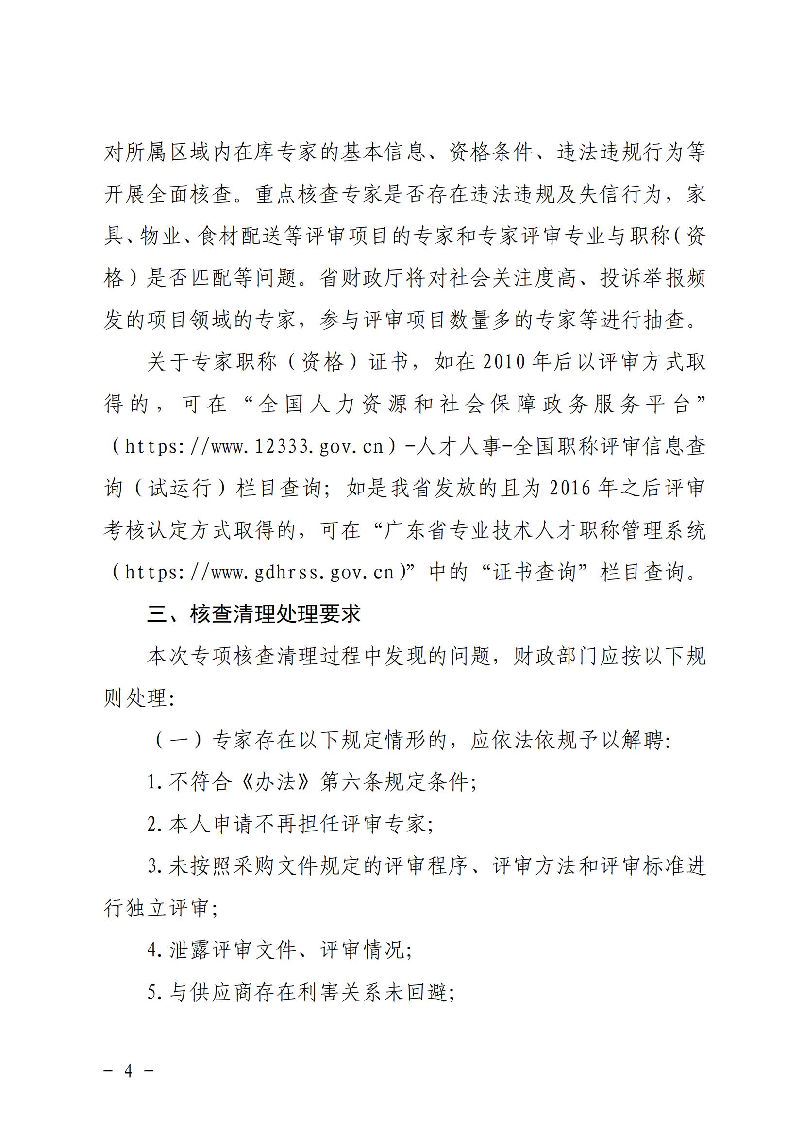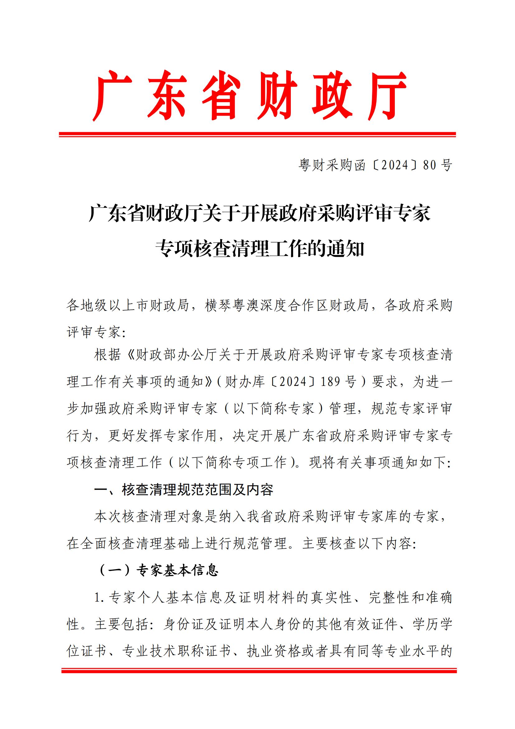 廣東省財(cái)政廳關(guān)于開展政府采購(gòu)評(píng)審專家專項(xiàng)核查清理工作的通知